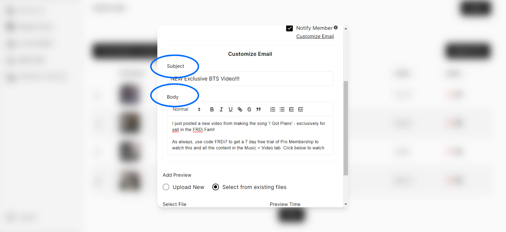 Whether you are posting directly on the home feed or sharing a media folder to the feed, you have the option of whether or not to send an email notification. If you choose to send an email notification, we recommend customizing it so the subject and body of the email are as personal as possible!