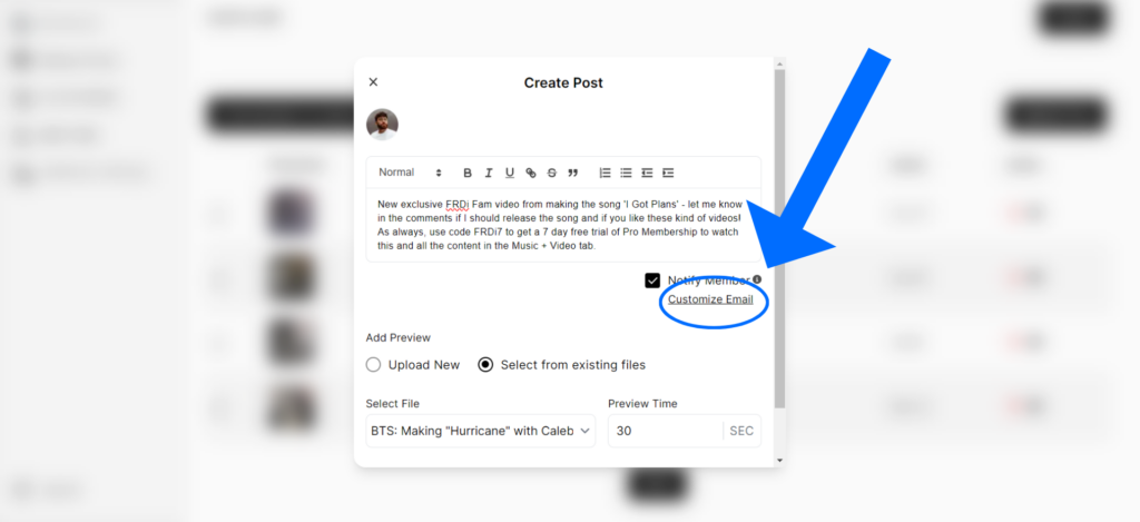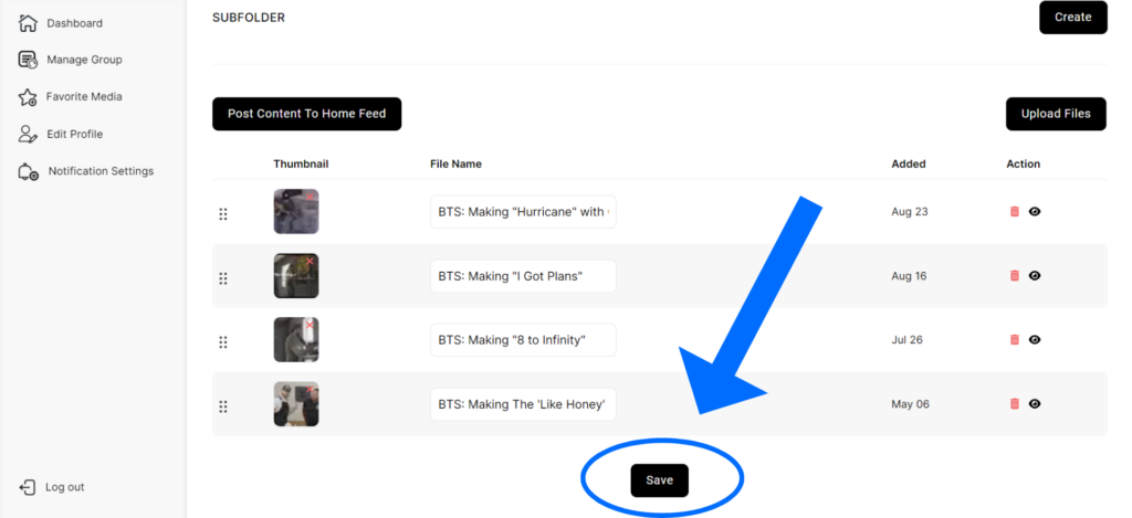 If you added something to a media folder and want to notify your fans, you can click “Post Content To Home Feed” without having to upload again in a new post and it will show up on the home feed with the option to customize an email!
