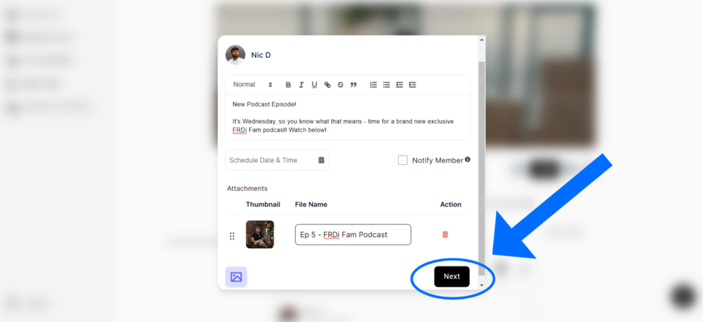 1. Make a post on the Home Feed, attach the Media, and click “Next” (this also works when you post a media folder to the home feed)