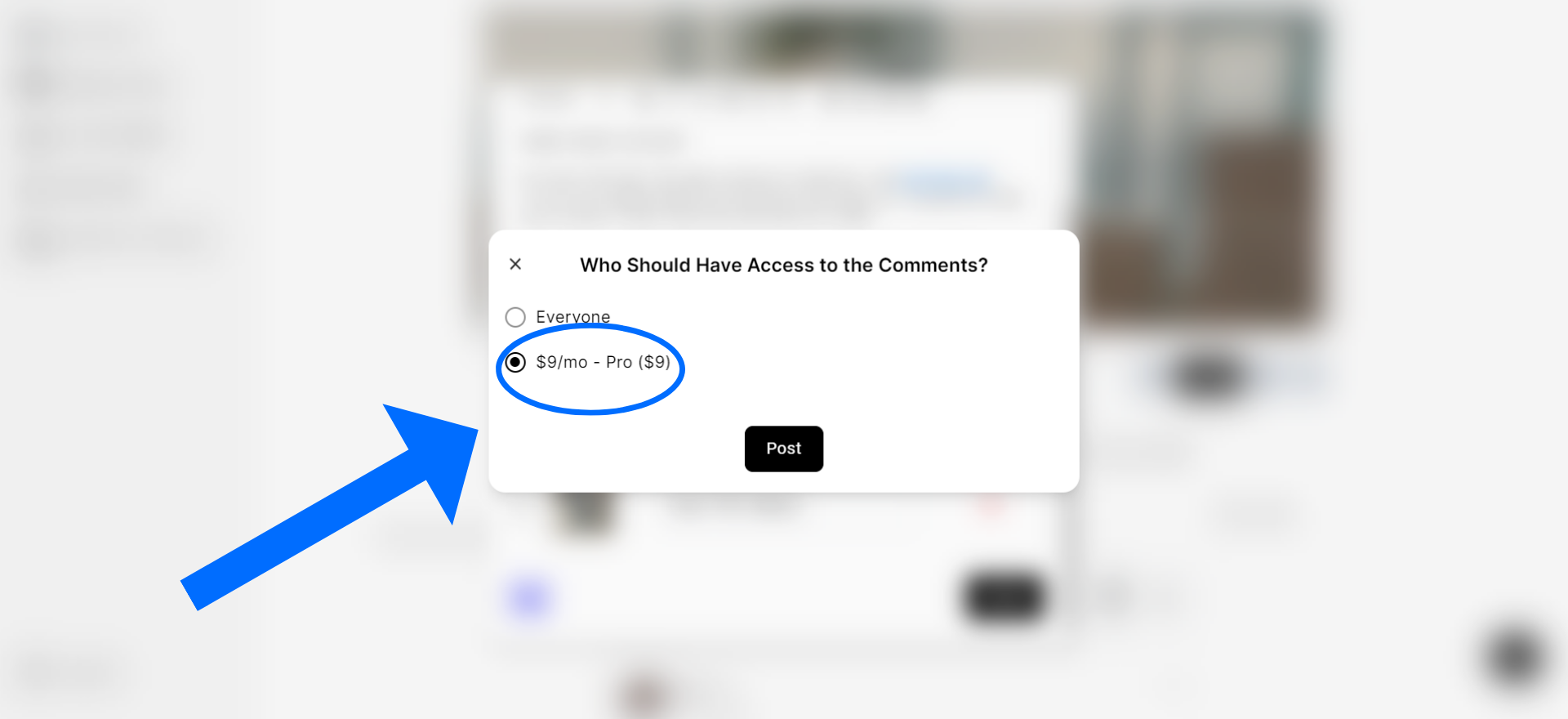 3. Click the paid tier you want to have access to the comments (if you have multiple paid tiers, any tier higher than the one you selected will also have access)