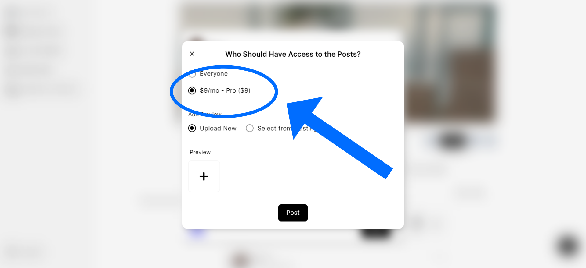2. Select the Paid Tier who should have access to the Media (which will enable the “Add Preview” section)