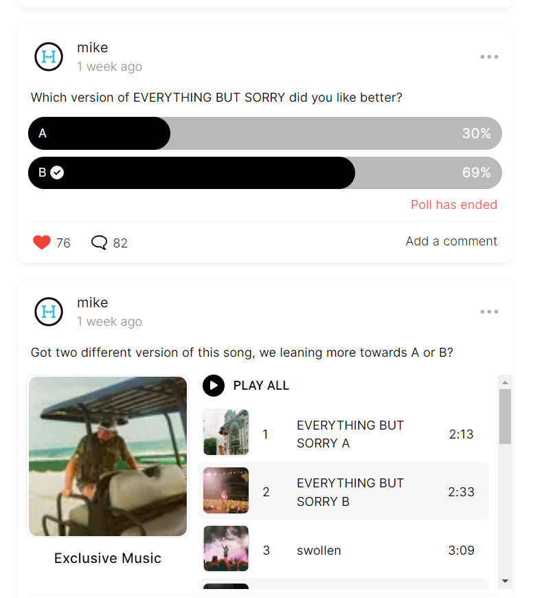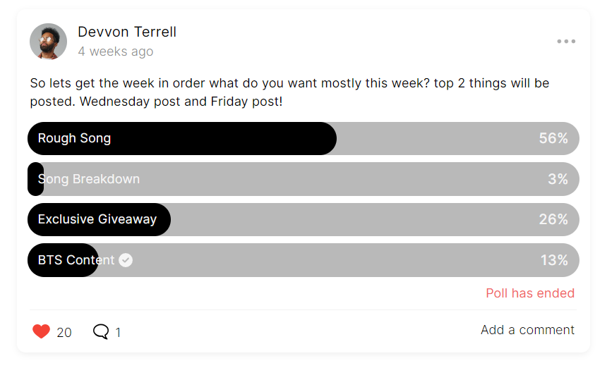In just a couple seconds of your time, our polls allow you to get real feedback from your die-hard fans.