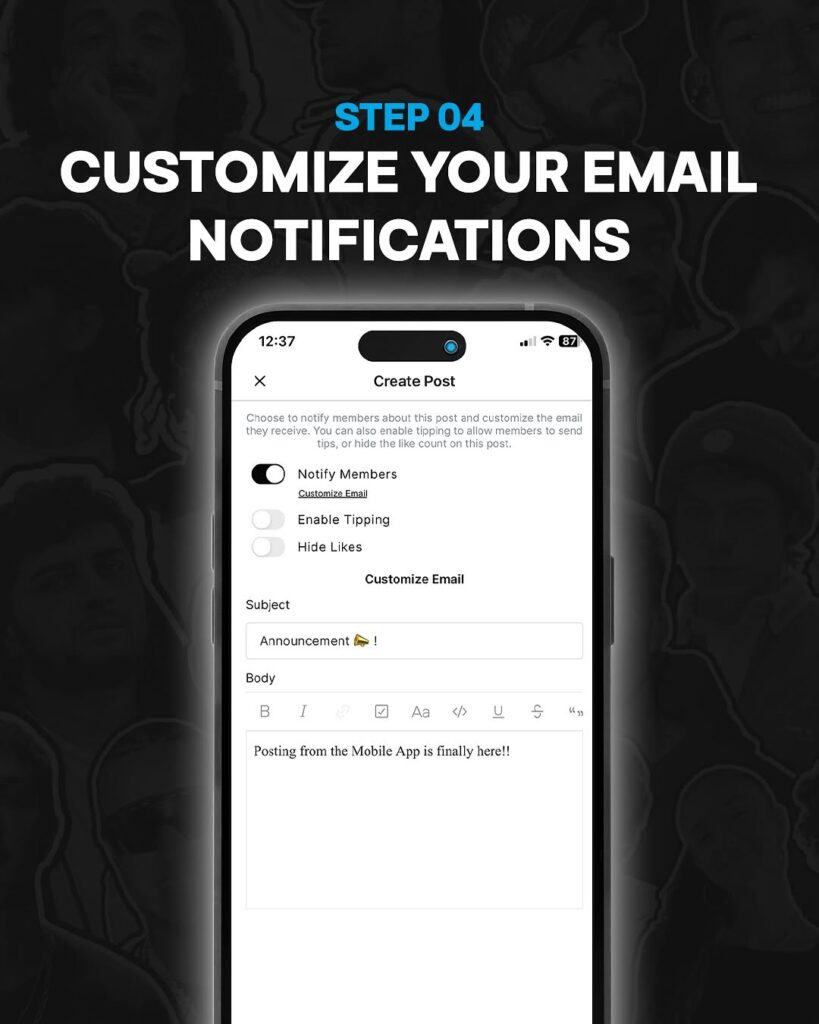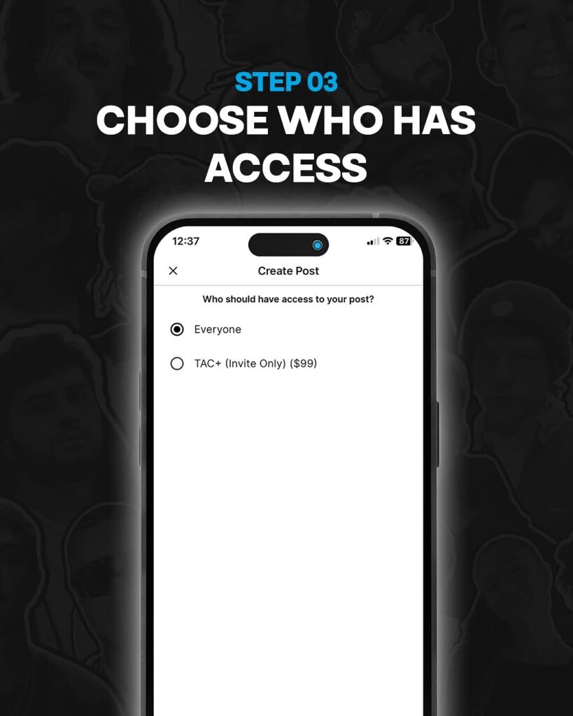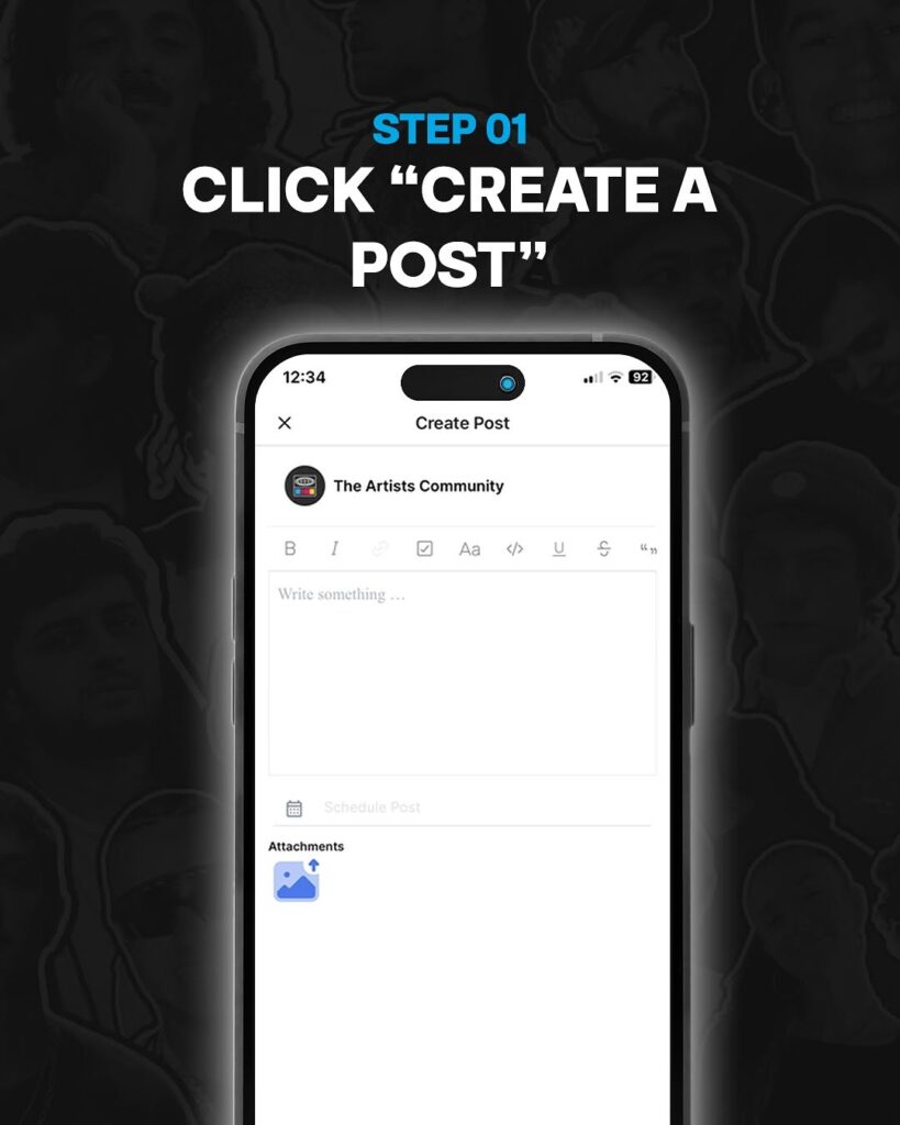 In just two clicks – one to open the App, and one to click “Create A Post”, artists can now post directly on their home feed.